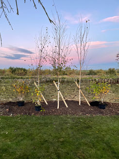 New silver birch trees were added to underpin the white themed border design, with repetition of structural evergreens and a succession of white flowering perennials along length of the border bringing unity to the scheme.